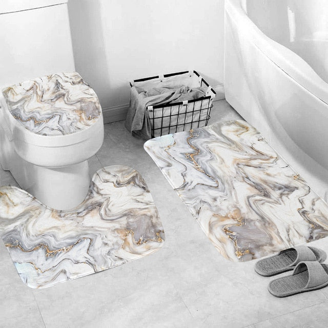 Marble Shower Curtain Sets With Non-slip Bathroom Rug,Toilet Lid Cover,Bath Mat,Durable Waterproof Bath Curtain For Bathtub